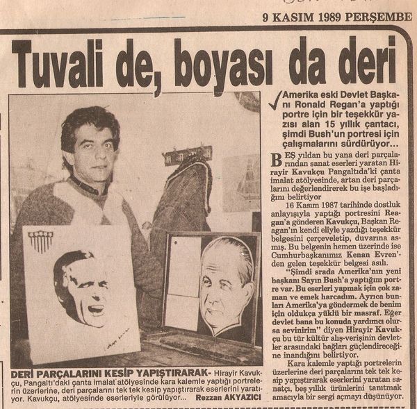 This time Hrayr Kavukcu prepared the portrait of president Reagen in leather, which he delivered to the Istanbul American Ambbasy to send to the White House.