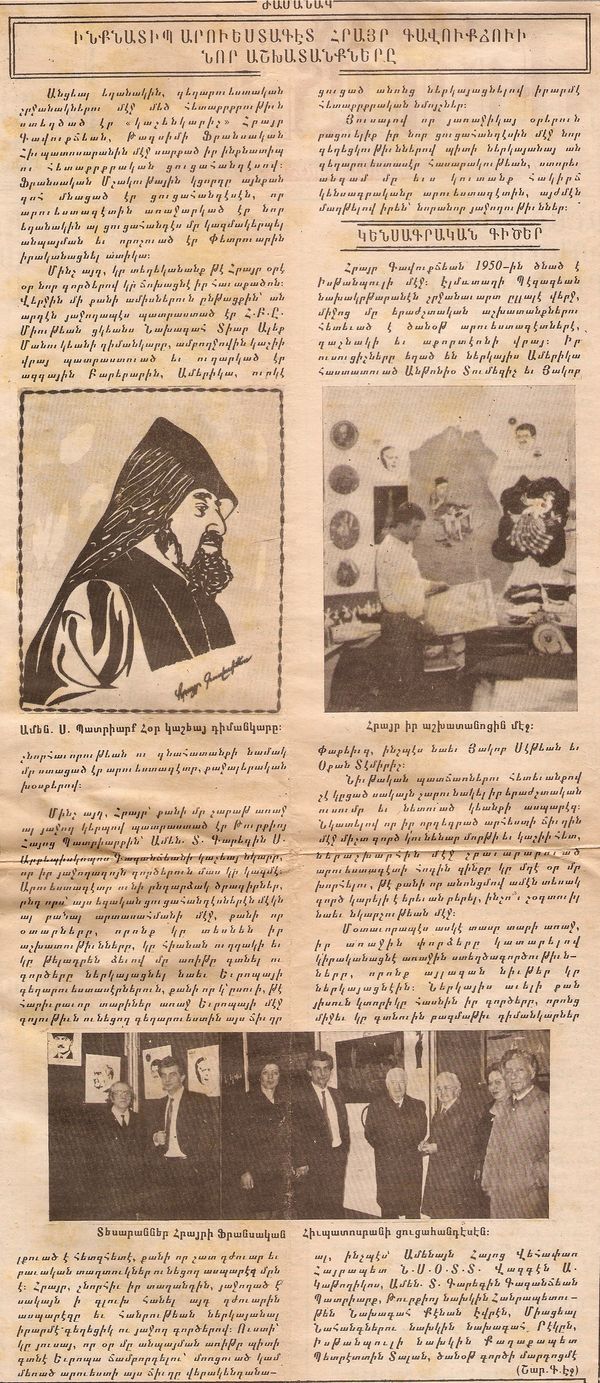 Leather artist Hrayr Kavukcu, who, after the portraits of US Presidents Reagen and Bush, Presidents of Turkey Evren and Özal, President of the Armenian General Benevolent Union (AGBU), Alek Manukyan, also successfully made a portrait of Karekin Kazanjian with leather, he was received by our spiritual leader and handed over to him his artistic handiwork, and he was praised by the patriarch, in this regard, he also spoke about his work, which the Bishop promised to take an interest in his questions and try to be helpful to him.