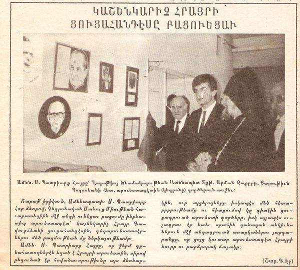 President Özal, later on as an appreciation, presented one of his signed photos to Hrayr and wished him luck. We also heartily congratulate, once again, the valuable and original artist, who, as is well known, also prepared in advance, among others, the patriarch, President of the Armenian General Benevolent Union (AGBU), Alek Manukyan, and former the United States President Reagen's leather portraits and other beautiful paintings, motifs, and scenes.