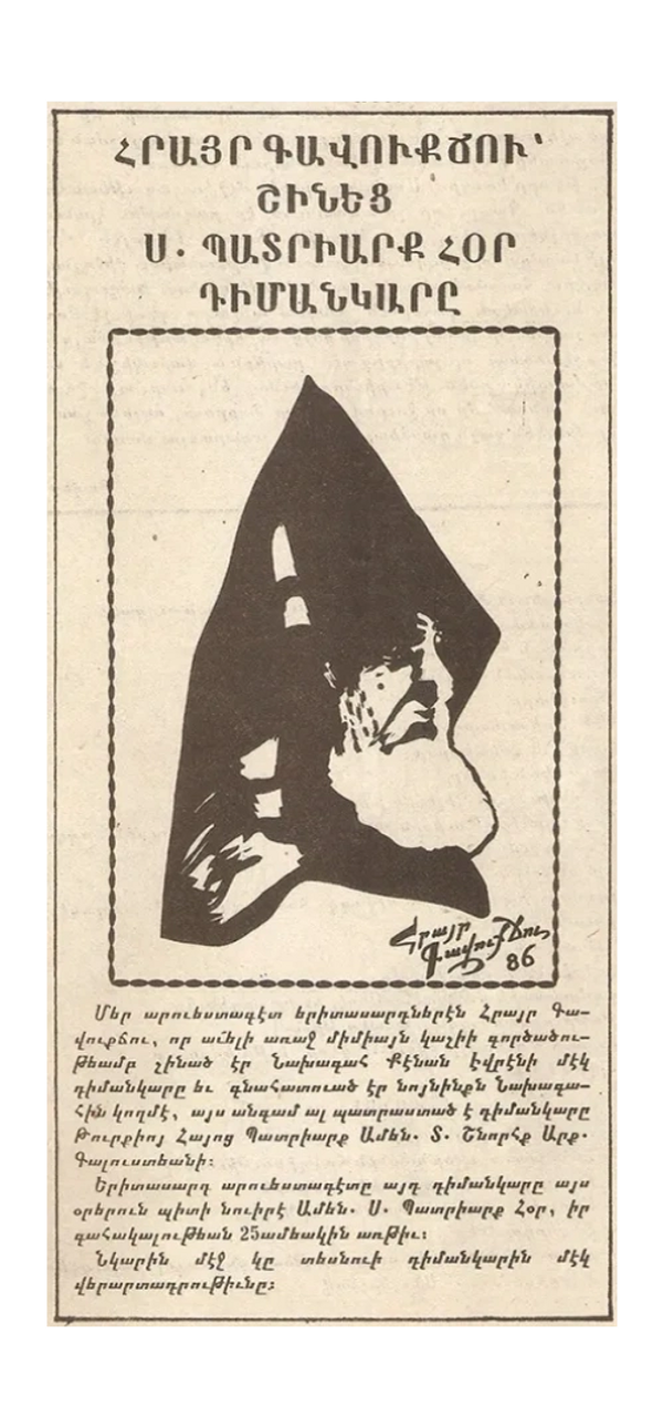 Our young artist Hrayr Kavukcu, who was made the portrait of president Kenan Evrens' only by using leather, was appraised personally by the president before. This time he made the portrait of the Patriarch of Turkey Armenians, Shnork Kalustians'. Nowadays, the young artist is planning to present the portrait of Patriarch Shnork Kalustians' to him. As a gift for the 25th anniversary of the enthronement.